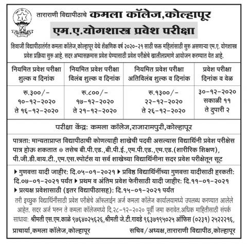 Advertisement of appointments at junior college and entrance exam for M. A YogaBy Dr. Smt. Anagha Pathak / December 11, 2020